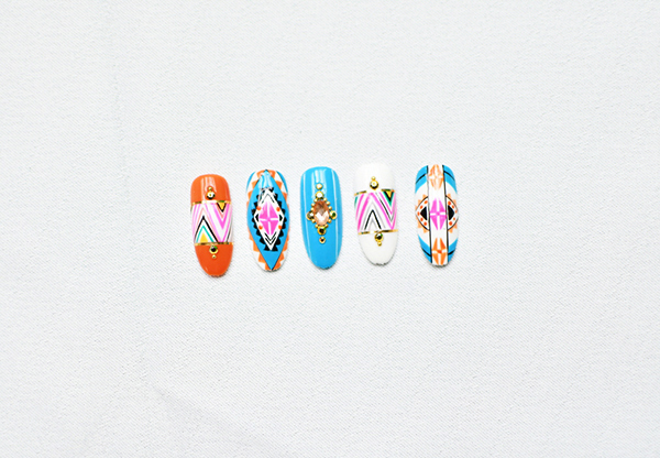 큐빅과 다양한 컬러의 조화 네일아트