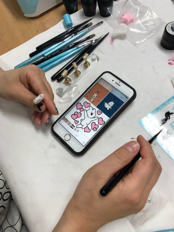 핸드폰 보면서~ 똑같이 그리는기! 네일아트 수업 중