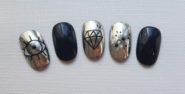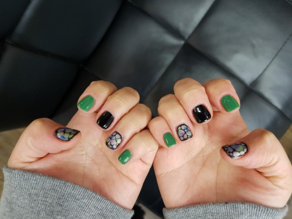 블랙+포인트컬러 섞인 셀프네일